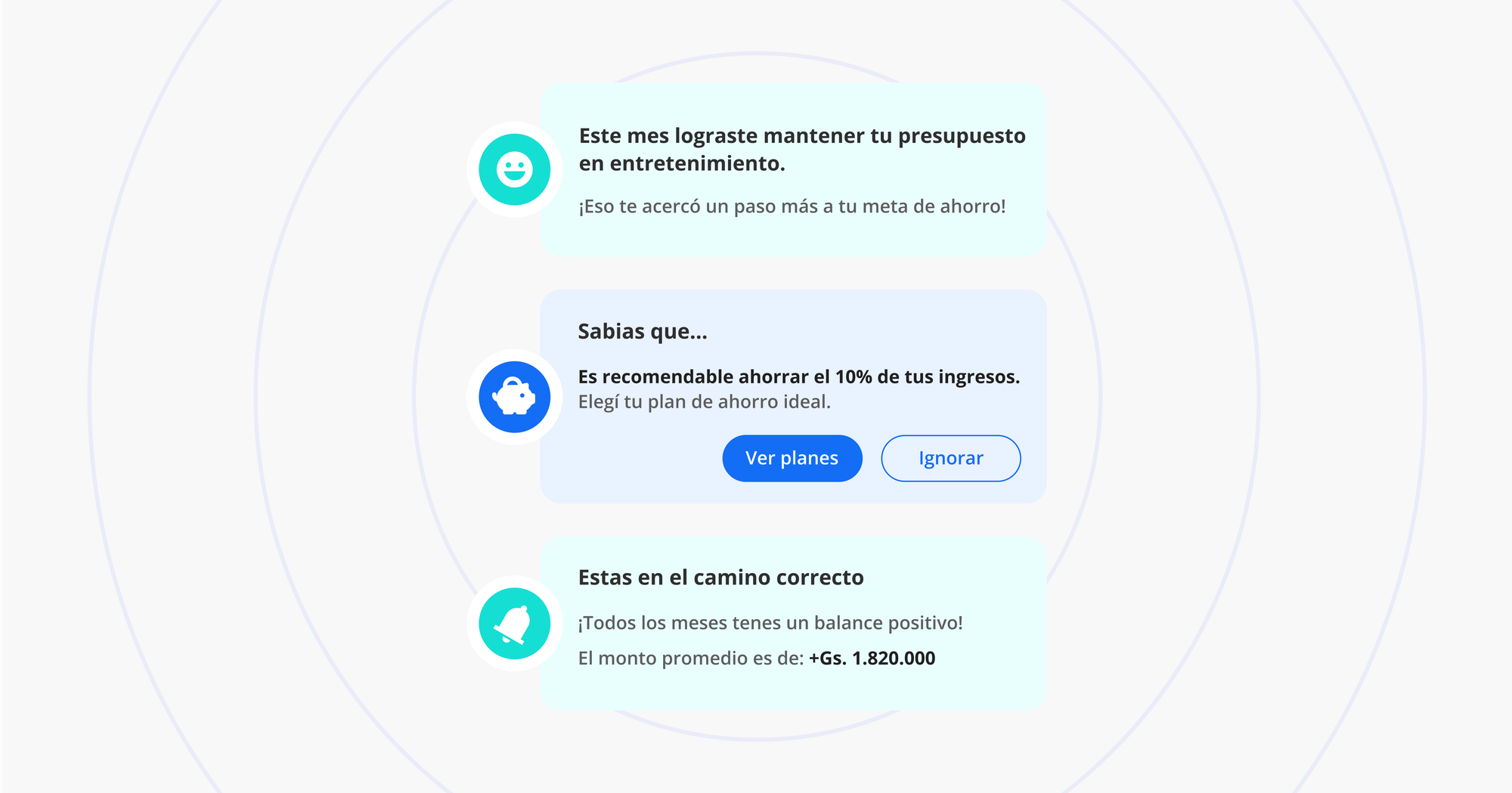 Por ejemplo, Finhealth, una app de salud financiera, Al cierre de cada mes, en lugar de limitarse a decir cuánto gastaste, Finhealth te cuenta una historia como: "Este mes lograste mantener tu presupuesto en entretenimiento. ¡Eso te acercó un paso más a tu meta de ahorro!"