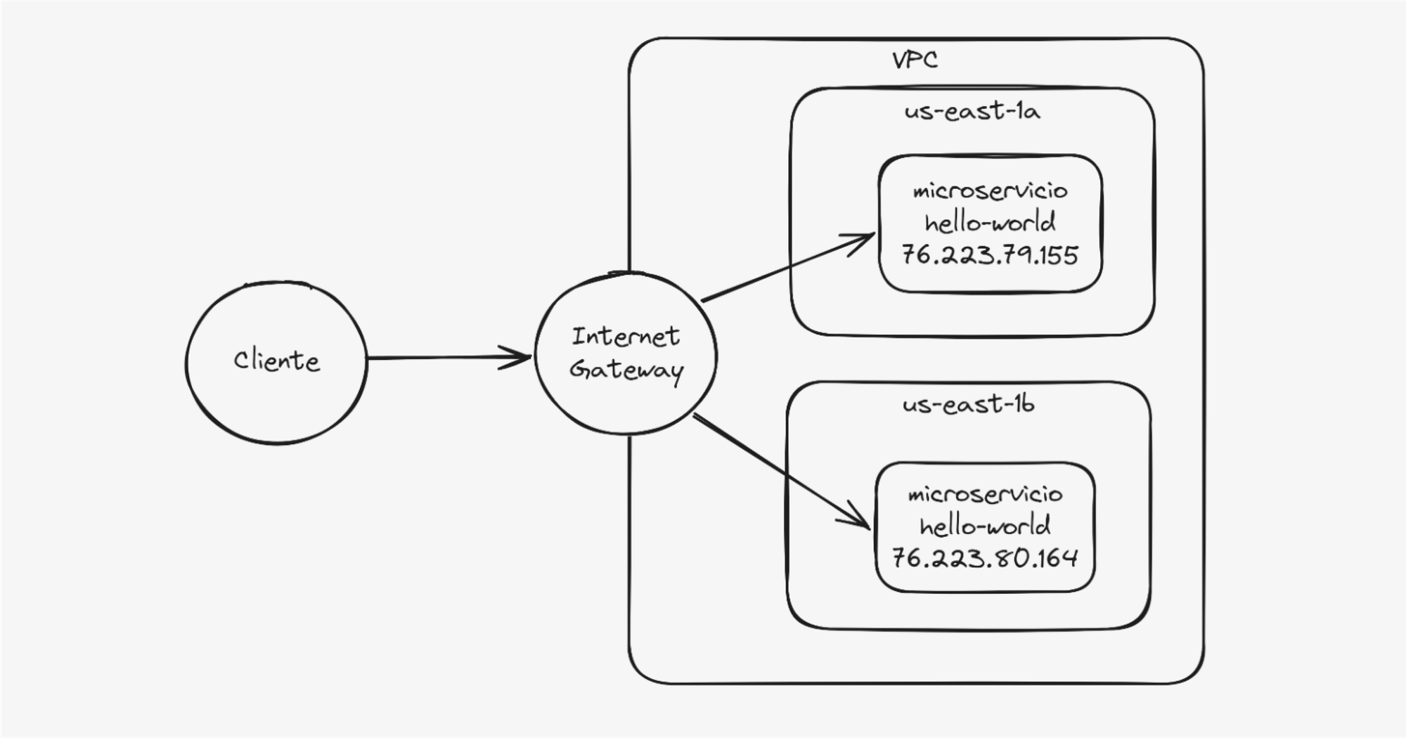 Donde cada A corresponde a una IP pública de un task, esto a su vez se irá actualizando automáticamente a medida que los tasks vayan rotando a través de su ciclo de vida, por lo cual logramos dar un orden al caos.