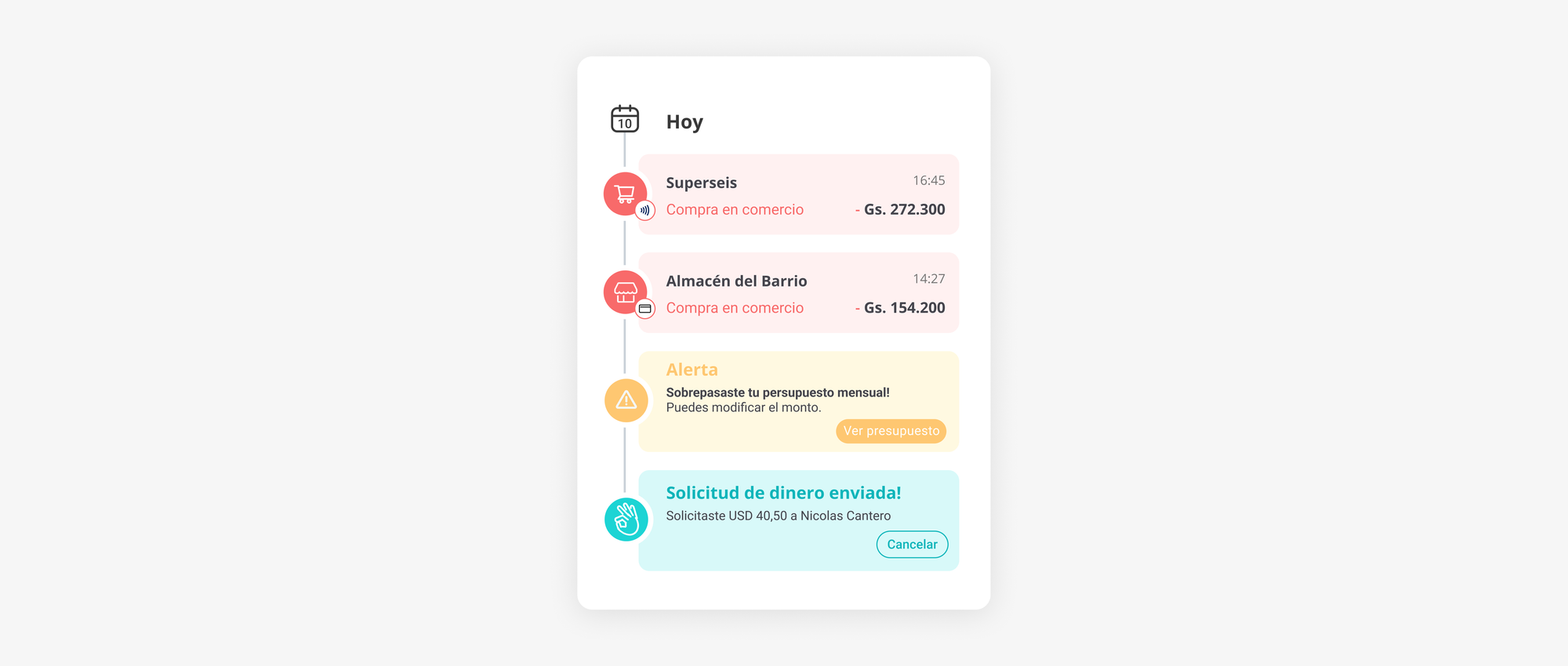 El activity feed de movimientos es otra área que ha recibido atención especial en esta actualización. Ahora, los usuarios pueden ver un resumen claro y conciso de todas sus transacciones, con opciones de filtrado y categorización que les permiten comprender mejor su comportamiento financiero. Hemos implementado un sistema de codificación por colores que facilita la interpretación de cada movimiento: los ingresos se destacan en verde, las salidas en rojo y las alertas en amarillo. Este enfoque visual no solo hace que el seguimiento de gastos sea más intuitivo, sino que también ayuda a los usuarios a identificar patrones y áreas de mejora en su gestión financiera.